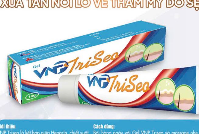 VNP TriSeo là gel bôi da dùng ngoài, hỗ trợ điều trị các vấn đề về da như viêm da kích ứng, mụn trứng cá nhẹ, hoặc vết thương nhiễm khuẩn nông. Sản phẩm được đóng gói trong tuýp 10g, thiết kế với tông màu xanh dương, đỏ và xanh lá nổi bật. Biểu tượng hình tròn màu xanh và vàng trên bao bì tạo ấn tượng về sự dịu nhẹ và bảo vệ da.