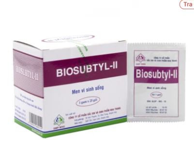 Men vi sinh sống Biosubtyl-Ii là sản phẩm của Biopharco có thành phần chính là Bacillus subtilis: 107 - 108 CFU dùng điều trị tiêu chảy, viêm ruột cấp và mạn tính, rối loạn tiêu hóa, đi ngoài phân sống.