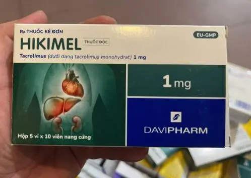 Hikimel 1mg chứa hoạt chất Tacrolimus, thuộc nhóm thuốc ức chế miễn dịch. Thuốc được chỉ định để phòng ngừa và điều trị thải ghép ở bệnh nhân ghép gan, thận hoặc tim.