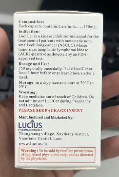 Thuốc LuciCer 150mg dùng trong điều trị ung thư phổi không tế bào nhỏ (NSCLC) có biểu hiện tiến triển hoặc di căn dương tính với gen ALK (anaplastic lymphoma kinase) đã được xác minh hoặc không đáp ứng lâm sàng hoặc không dung nạp crizotinib.