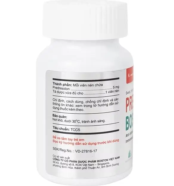 Prednisolon Boston 500v dạng viên nén có thành phần chính là Prednison được sản xuất bởi Công ty Cổ phần Dược phẩm Boston Việt Nam. Prednisolon chỉ định dùng điều trị các rối loạn viêm và dị ứng.