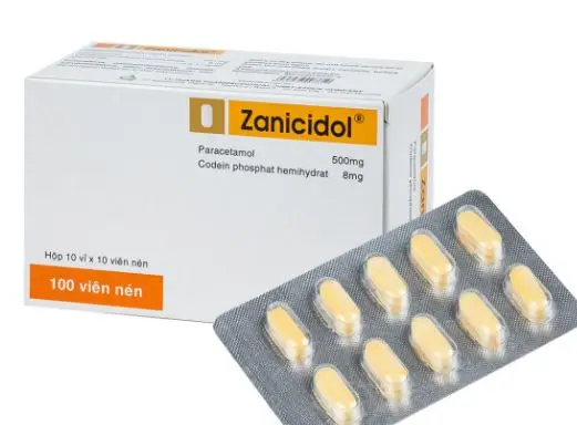 Thuốc Zanicidol là sản phẩm của Công ty Cổ phần Dược phẩm TV. Pharm. Thuốc có chứa hoạt chất Paracetamol và Codein phosphat hemihydrat. Đây là thuốc có tác dụng điều trị trong các trường hợp nhức đầu, nhức răng, đau nhức bắp thịt, đau bụng kinh, đau do chấn thương hoặc phẫu thuật, đau do viêm khớp, phụ trị trong viêm khớp dạng thấp và các bệnh khớp, hạ sốt, giảm cảm.