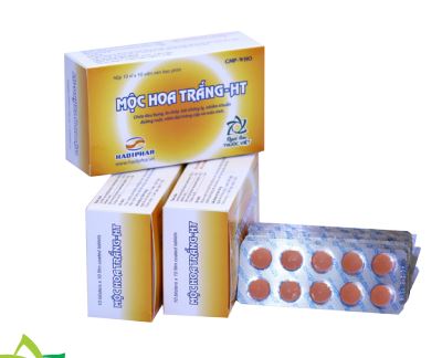 Thuốc Mộc Hoa Trắng - HT được bào chế dưới dạng viên nén bao phim, đóng gói theo hộp 10 vỉ Al/PVC x 10 viên.