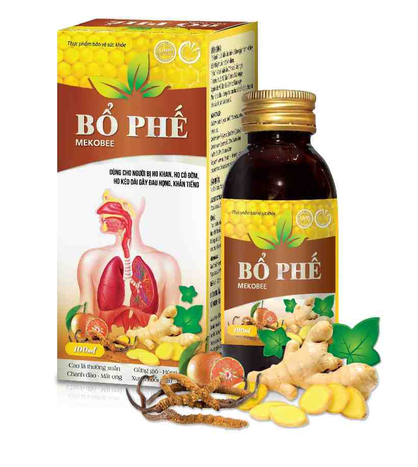 Siro BỔ PHẾ MEKOBEE (Chai 100ml) Giúp bổ phế, giảm ho,làm ấm đường hô hấp, giảm ngứa rát cổ họng, đau họng.