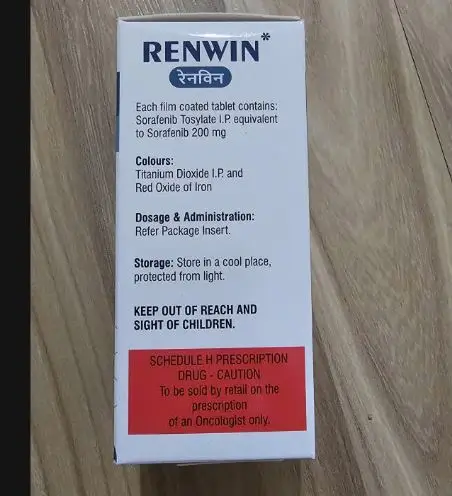 Thuốc Renwin (Sorafenib Tablets I.P.) là thuốc điều trị ung thư, chứa hoạt chất Sorafenib – một thuốc ức chế đa kinase, giúp ngăn chặn sự phát triển và lan rộng của tế bào ung thư bằng cách ức chế sự hình thành mạch máu nuôi khối u.