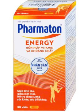 Pharmaton Energy là thực phẩm chức năng, bổ sung nhân sâm G115, hỗn hợp vitamin và khoáng chất giúp tỉnh táo, hỗ trợ làm giảm mệt mỏi, tăng cường sức khỏe, hỗ trợ tăng cường sức đề kháng cho cơ thể.