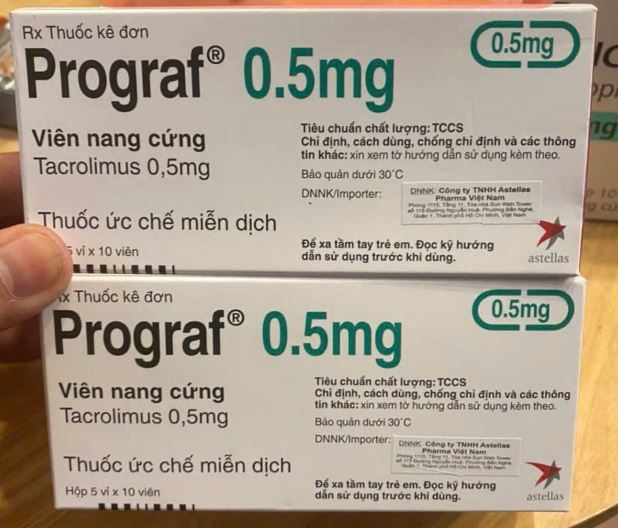 Prograf 0.5mg của Astellas là thuốc ức chế miễn dịch dạng viên nang cứng, được sản xuất tại Ireland theo công nghệ Nhật Bản. Với thành phần chính là Tacrolimus 0.5mg, thuốc được chỉ định để phòng ngừa thải ghép ở bệnh nhân ghép thận, gan hoặc tim. Đóng gói hộp 5 vỉ x 10 viên, Prograf giúp kiểm soát phản ứng miễn dịch, hỗ trợ cơ thể chấp nhận cơ quan ghép. Sử dụng theo hướng dẫn của bác sĩ, giá tham khảo khoảng 625.000 VNĐ/hộp.