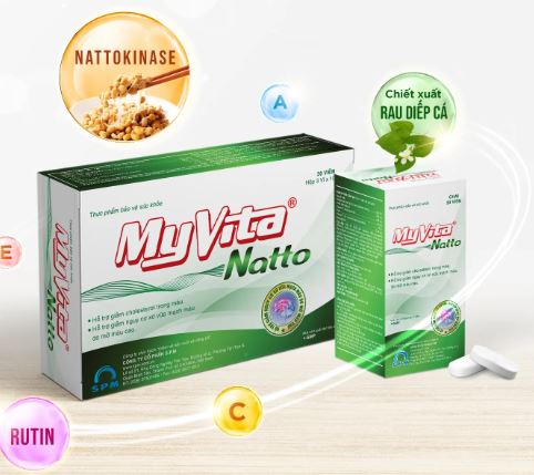 MyVita Natto là sản phẩm kết hợp giữa Nattokinase (chiết xuất từ đậu nành lên men), cùng vitamin C, E và chiết xuất diếp cá giúp hỗ trợ giảm cholesterol trong máu hiệu quả.