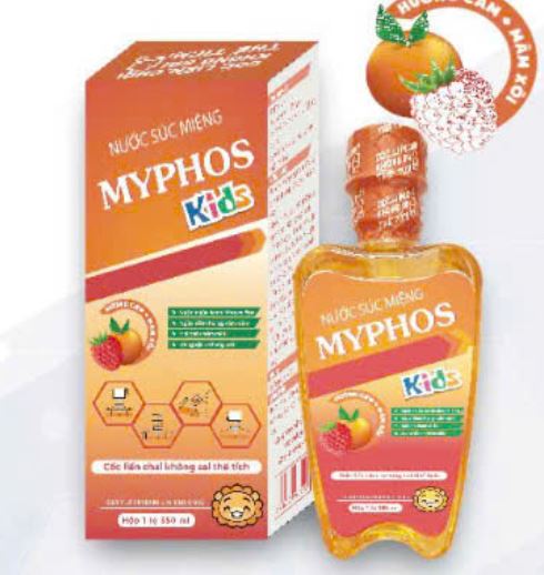MYPHOS Kids là nước súc miệng dành cho trẻ em, có hương dâu thơm ngon, giúp làm sạch khoang miệng và hỗ trợ bảo vệ răng miệng mỗi ngày. Sản phẩm có dung tích 250ml, thiết kế chai tiện lợi cùng màu sắc và hình ảnh trái dâu bắt mắt, phù hợp với trẻ nhỏ. Trên nhãn có lưu ý “đọc kỹ hướng dẫn sử dụng trước khi dùng”, đảm bảo an toàn khi sử dụng.