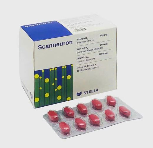 Scanneuron được sản xuất bởi công ty Stella, thành phần chính là Thiamin nitrat (Vitamin B1), Pyridoxin hydroclorid (vitamin B6), Cyanocobalamin (vitamin B12), được chỉ định để điều trị hỗ trợ các rối loạn về hệ thần kinh như đau dây thần kinh, viêm dây thần kinh ngoại biên, viêm dây thần kinh mắt, viêm dây thần kinh do tiểu đường và do rượu, viêm đa dây thần kinh, dị cảm, đau thần kinh tọa và co giật do tăng tính dễ kích thích của hệ thần kinh trung ương.